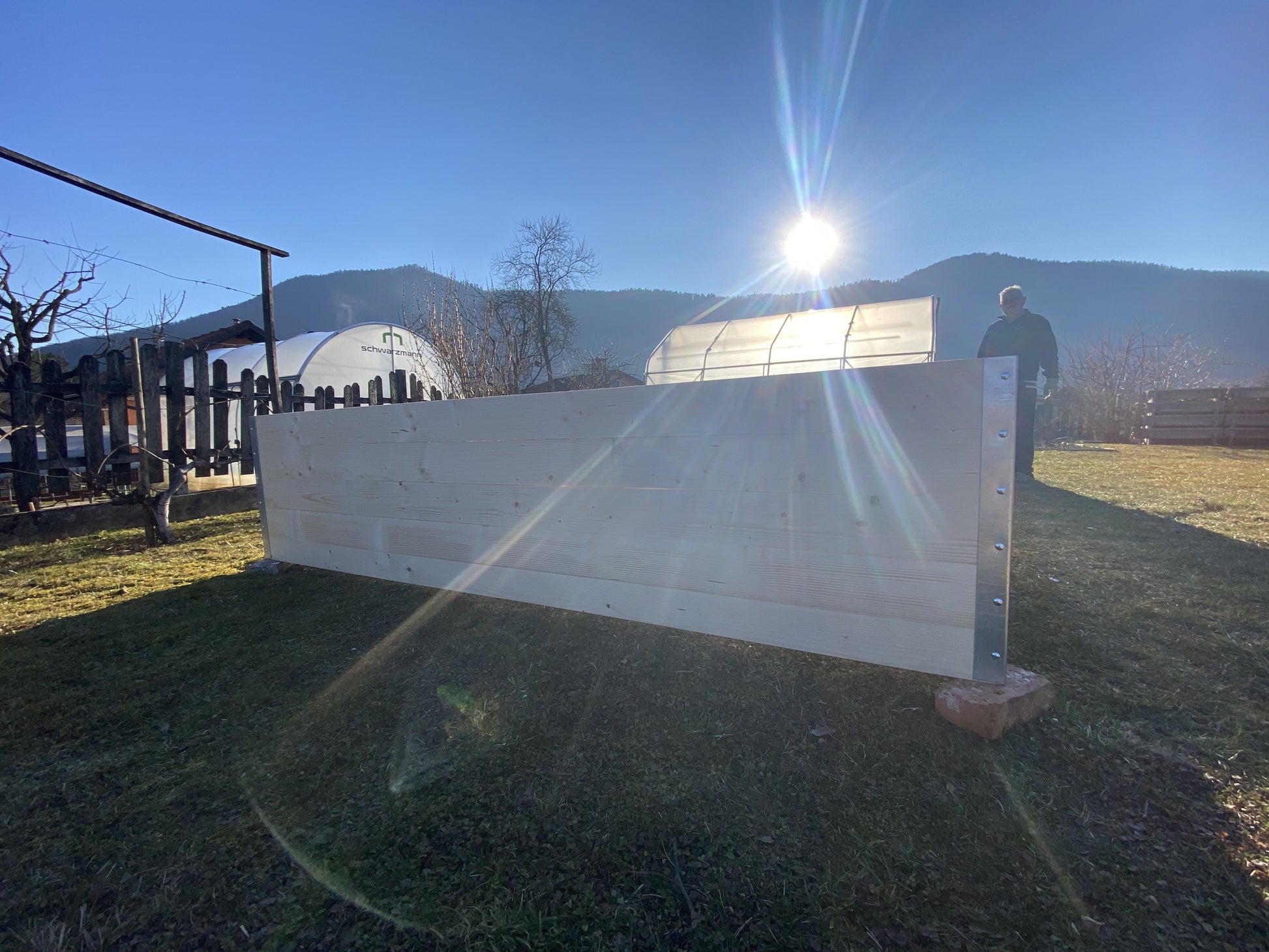 Wood Type: Spruce Composition on the inside: Tarpaulin & rabbit wire mesh The beam is reinforced with threaded rods. Protected with tung oil for the preservation of wooden surfaces.