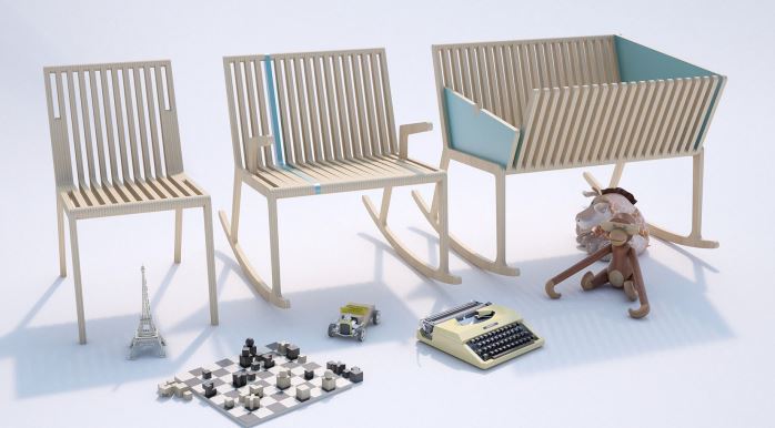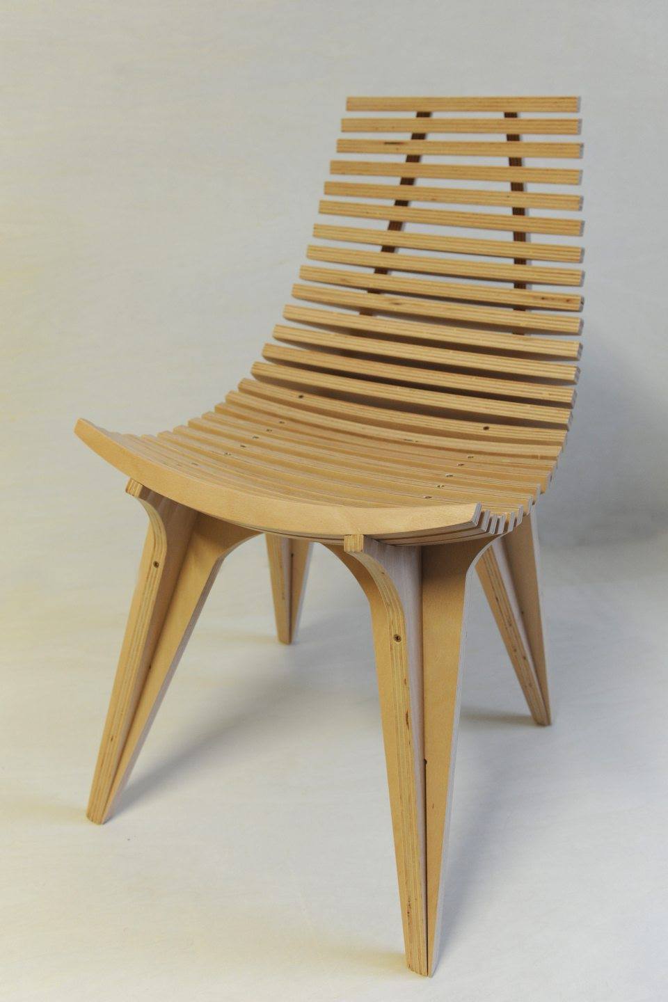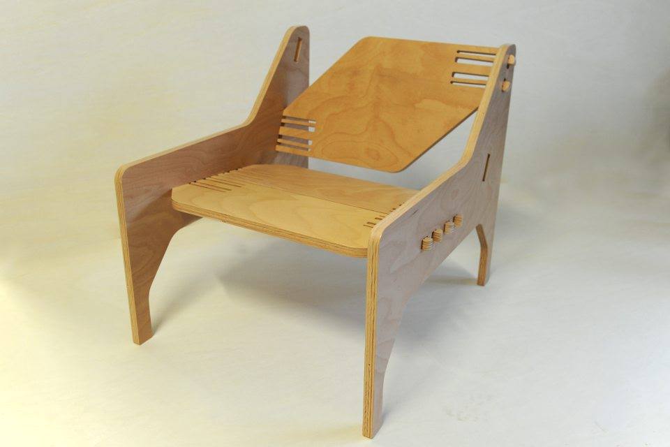 The author transposes a rather conventional and well-known chair shape into a puzzle of five components without any fasteners, glue, screws, or the like. Everything is designed using an 18 mm thick plywood board. Each piece, cut using CNC technology, interlocks with six self-locking joints and assembles into an object of a familiar purpose.