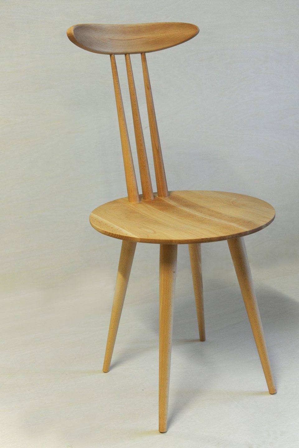 The "Forest Fruit" chair combines the strength of wood with a gracefully delicate form inspired by the magical world of fungi always present in the forest. Among all the contributions, this proposal stands out as one of the few that emphasizes the aesthetic or beauty aspect of the product. The manufacturing method is well-known, especially from Scandinavian carpentry production. This is a technique that was once used in our country to make so-called "colonial" chairs. The legs of the chair and the rods composing the backrest are inserted into a relatively thick seat surface. The elegant "Forest Fruit" design is evidently inspired by the slender fungal hyphae, as well as the slim trunks of the bracket fungus. The simple elegance of the chair was decisive in awarding the prize.