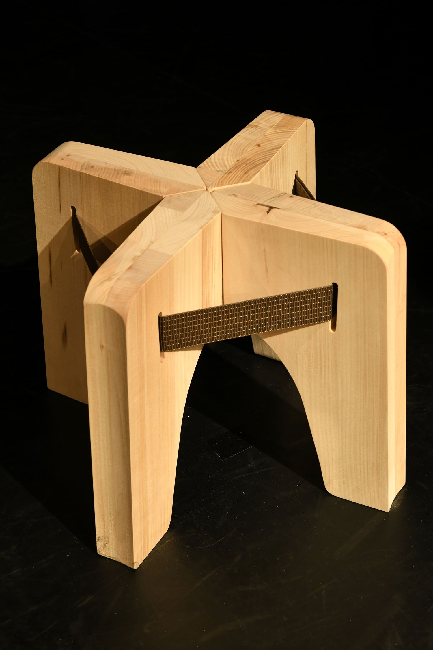 After devastating wildfires in recent years in global forests and considering the principles of circular economy and product life cycle, I decided to create an object that uses wood as the main material, but only for the creation of the object and not for cutting down trees to make another wooden chair. Mycelium is a material that utilizes trees and living microorganisms and expands as it progresses. Combined with agricultural waste or residues and waste from wood production, you can create a highly durable result that is 100% biodegradable. The process requires low energy, making it suitable for this scale of production. As demanded by the competition, the main idea is to bring humans closer to the forest, awakening their awareness of environmental issues as a higher goal. Forland is a two-part chair that uses wood as a backrest. For secondary use, it can be assembled as a stool, allowing the user to sit anywhere.