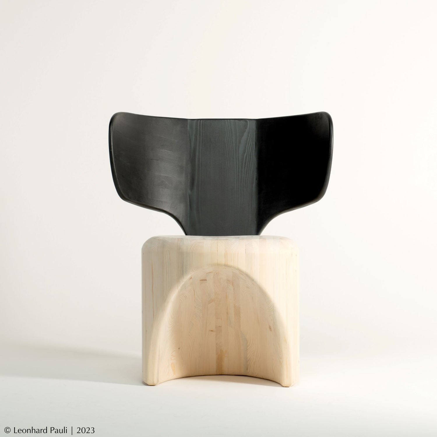 Harmony embodies the delicate balance between the splendor of nature's creations and the presence of human life. Nestled in the vastness of the Kočevje forest, a kingdom rich in natural allure, inhabited by magnificent spruces and beech trees, an astounding concept emerges. The use of a segment of spruce trunk, often a byproduct of forestry activities, serves as an excellent foundation for crafting an exceptional chair. While the practice of using tree trunks as seating furniture is rooted in millennia-old tradition, Harmony evolves with a modern touch – an elegantly curved, black-stained backrest made of plywood, securely embedded in the trunk. Both elements are treated with linseed oil to preserve the material's properties and simplify subsequent care. This durable design not only ensures longevity but also encompasses the tree's lifetime absorption of carbon dioxide.