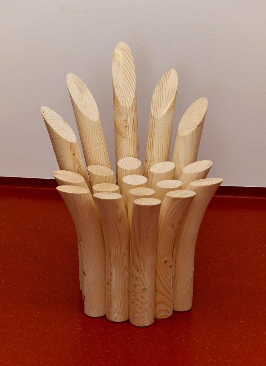 estetske vrednosti pa stol nosi tudi sporočilo sobivanja— vsako ‘steblo’ raste